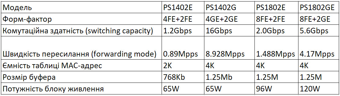 Кожен комутатор має вбудований блок живлення, що дозволяє не тільки збільшити загальну надійність пристрою, але й позбавляє від зайвих проводів, банально підвищуючи візуальну привабливість та заощаджуючи місце в комутаційній шафі.