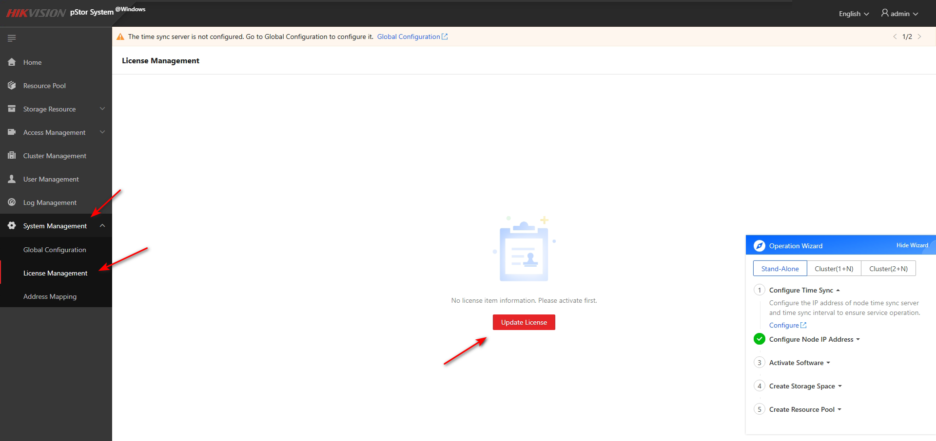 Остался последний шаг — активация лицензий. Для этого перейдите на вкладку «System Management» → «License Management» и нажмите красную кнопку «Update License».