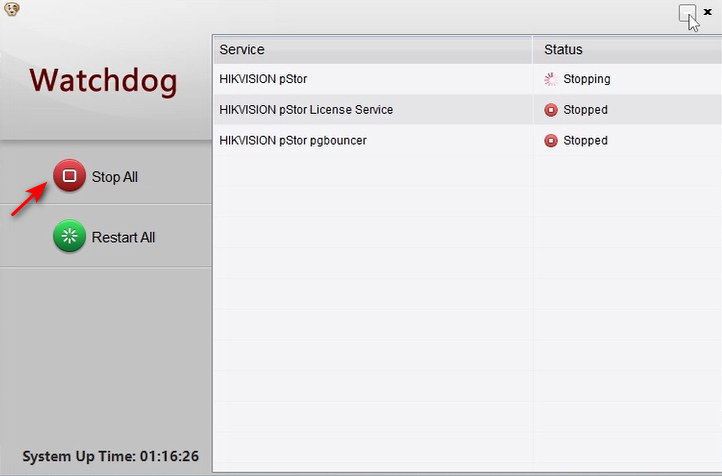 После успешной деактивации можно приступать к удалению pStore с сервера. Сначала остановите его работу через Watchdog.