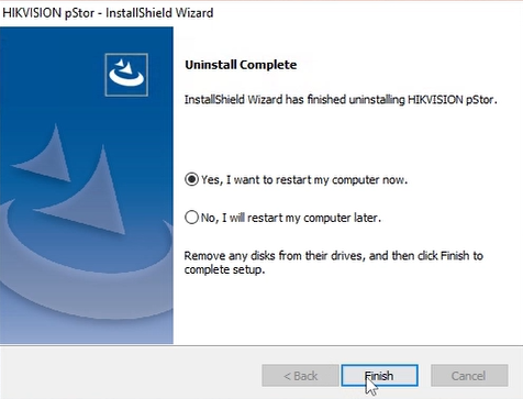 После завершения процесса удаления подтвердите перезагрузку системы, нажав кнопку «Finish».