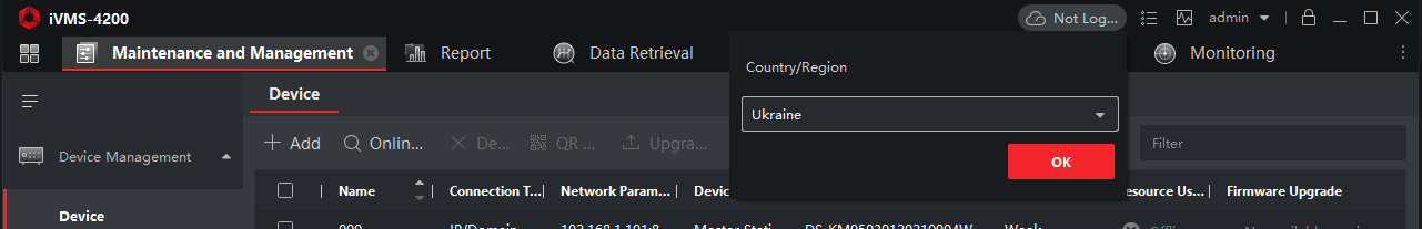 Maintenance and Management → Device Management → Device