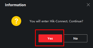 “You will enter Hik-Connect. Continue?”