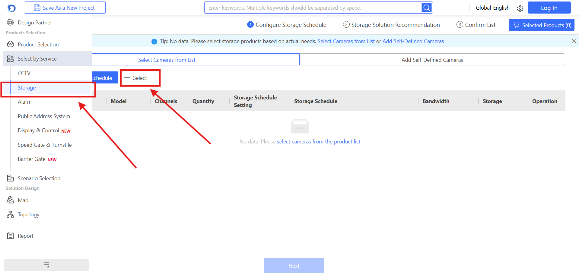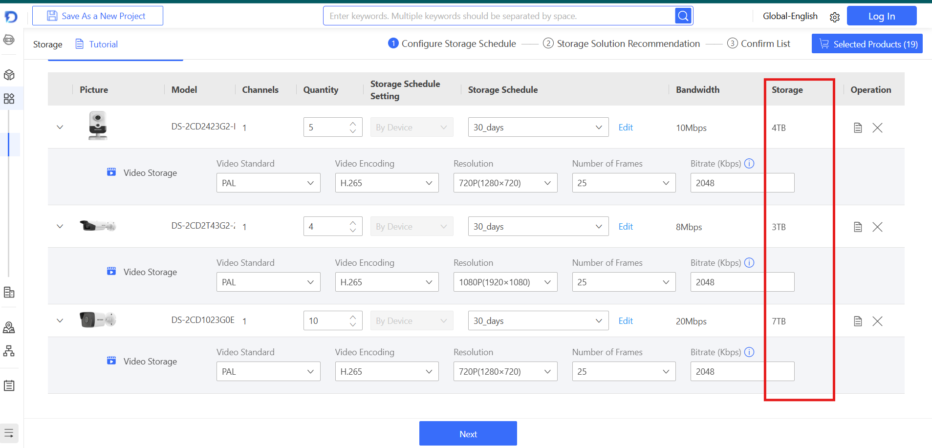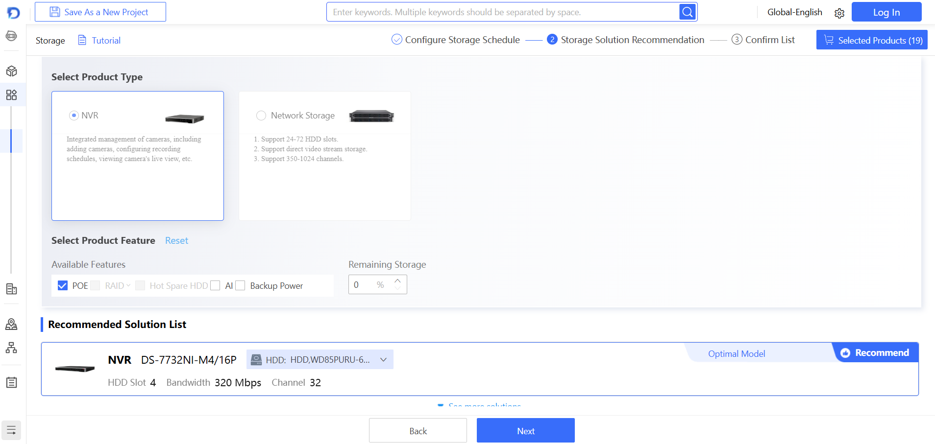 Натисніть Next — інструмент запропонує варіанти систем зберігання, які відповідають розрахованим вимогам.