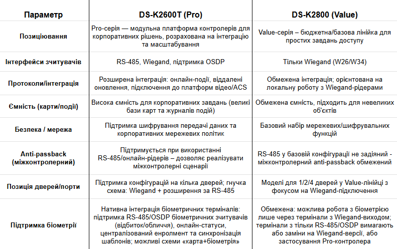 Контролери доступу Hikvision: інтерфейси та обмеження DS-K2600/DS-K2800