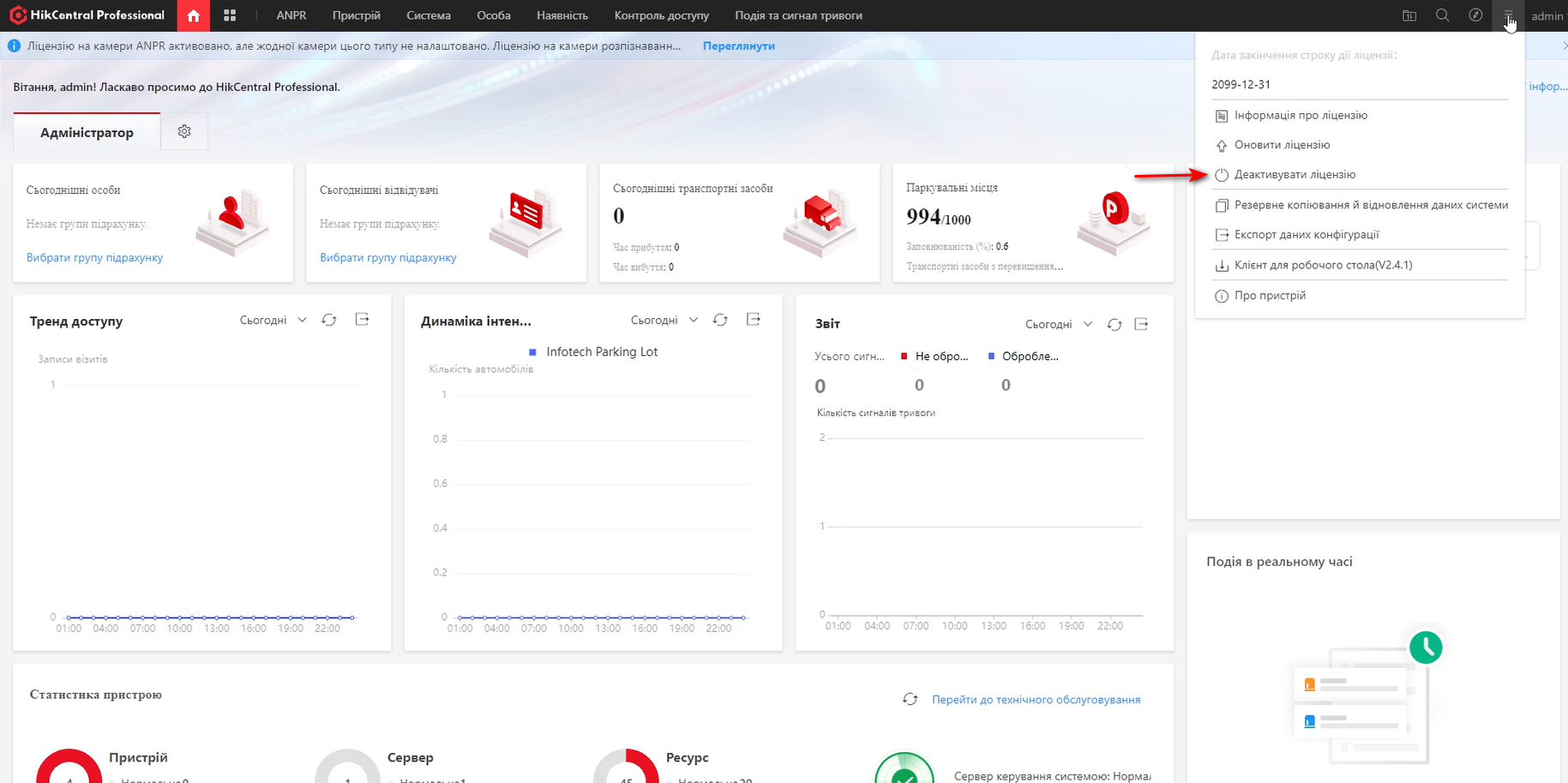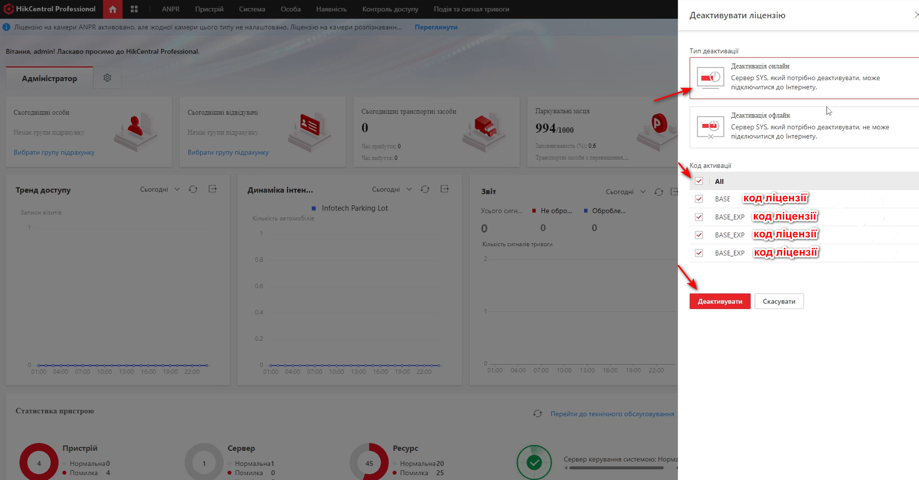Крок 1 - Деактивація ліцензій на версії HikCentral Professional 2.4.1