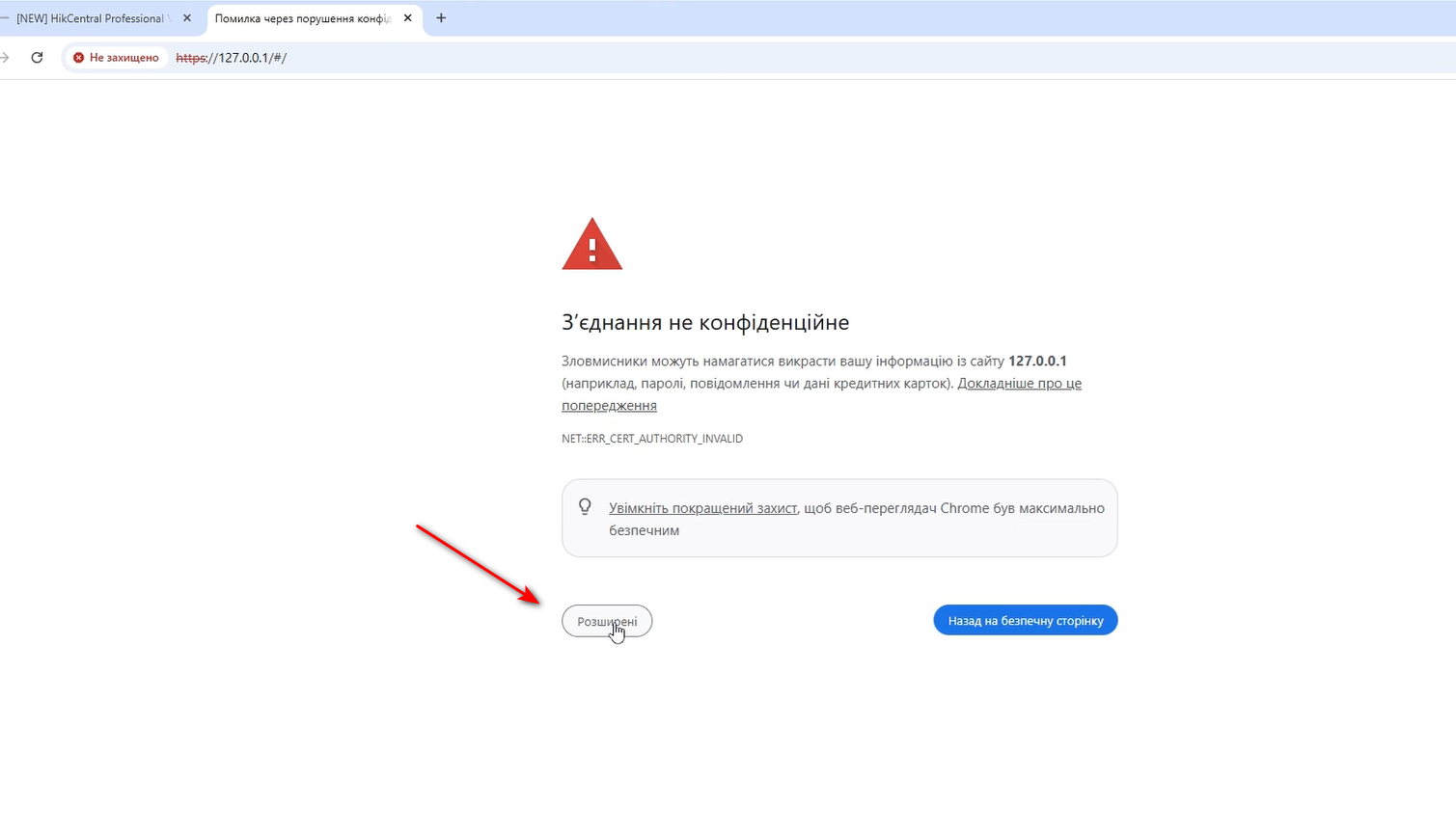 Оскільки в нас з'єднання HTTP а не HTTPS нам потрібно дозволити нашому браузеру перегляд цієї сторінки.