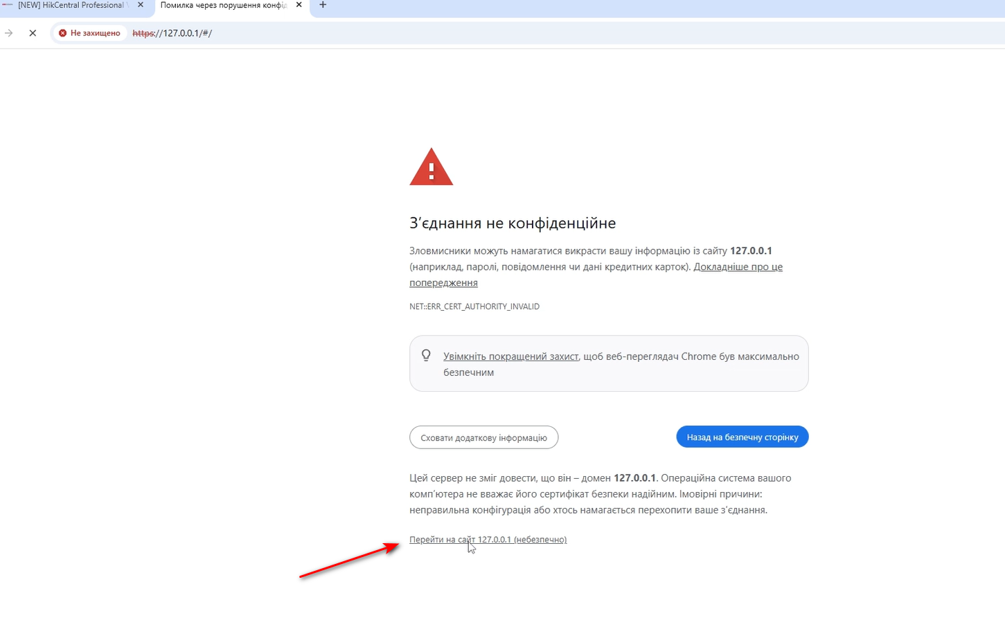 Підтверджуємо перехід на сайт 127.0.0.1.