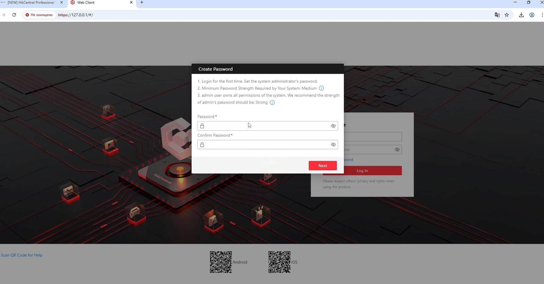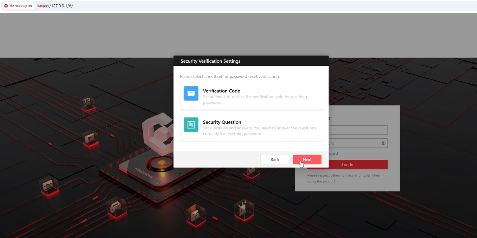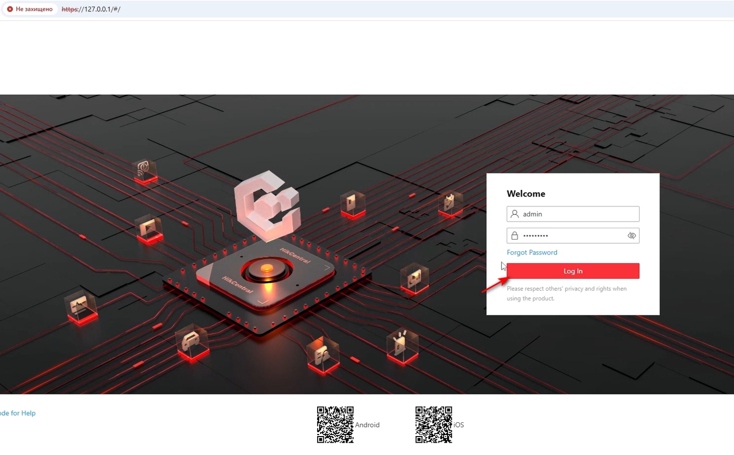 Нарешті ми можемо зайти до HikCentral Professional 3.0.1, вводимо логін admin та пароль який ми створили пару кроків назад, і тиснемо кнопку |Log In|.