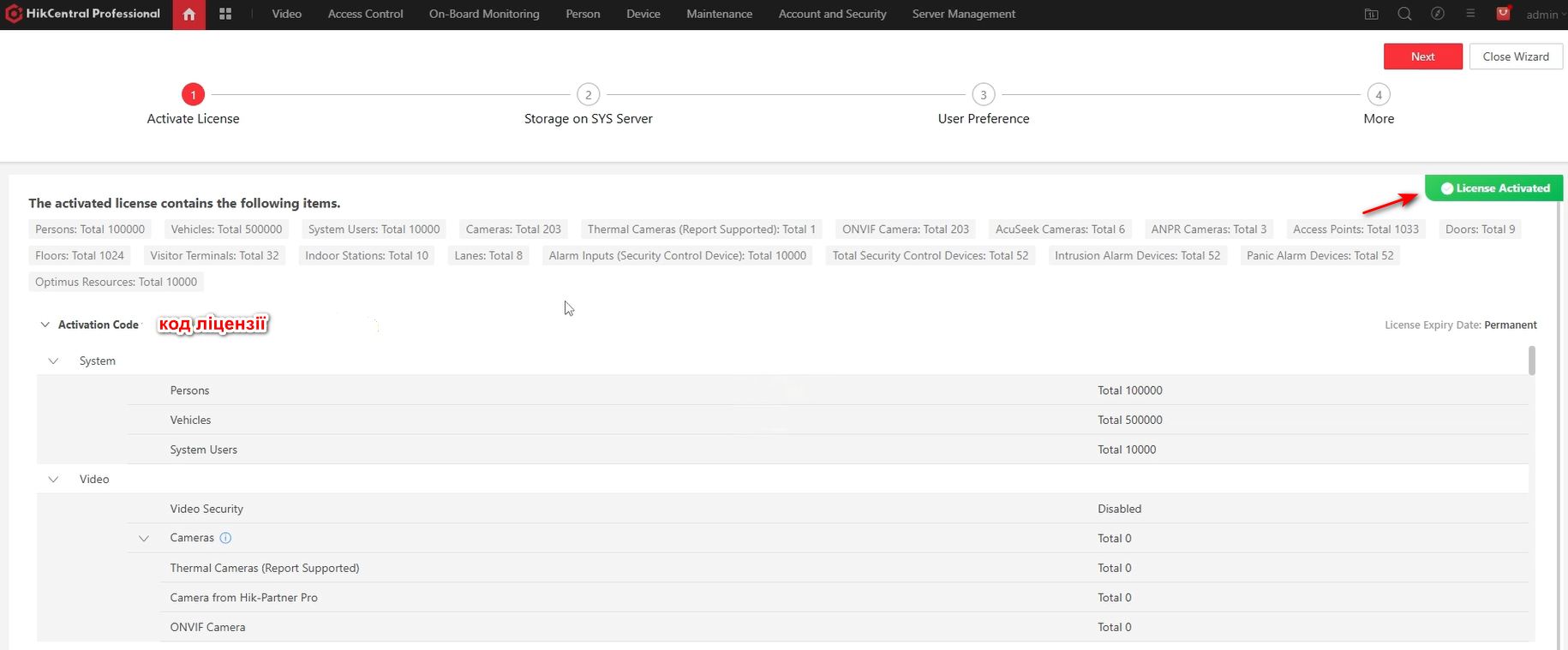 Далі ми бачимо успішне підтвердження активації ліцензій.