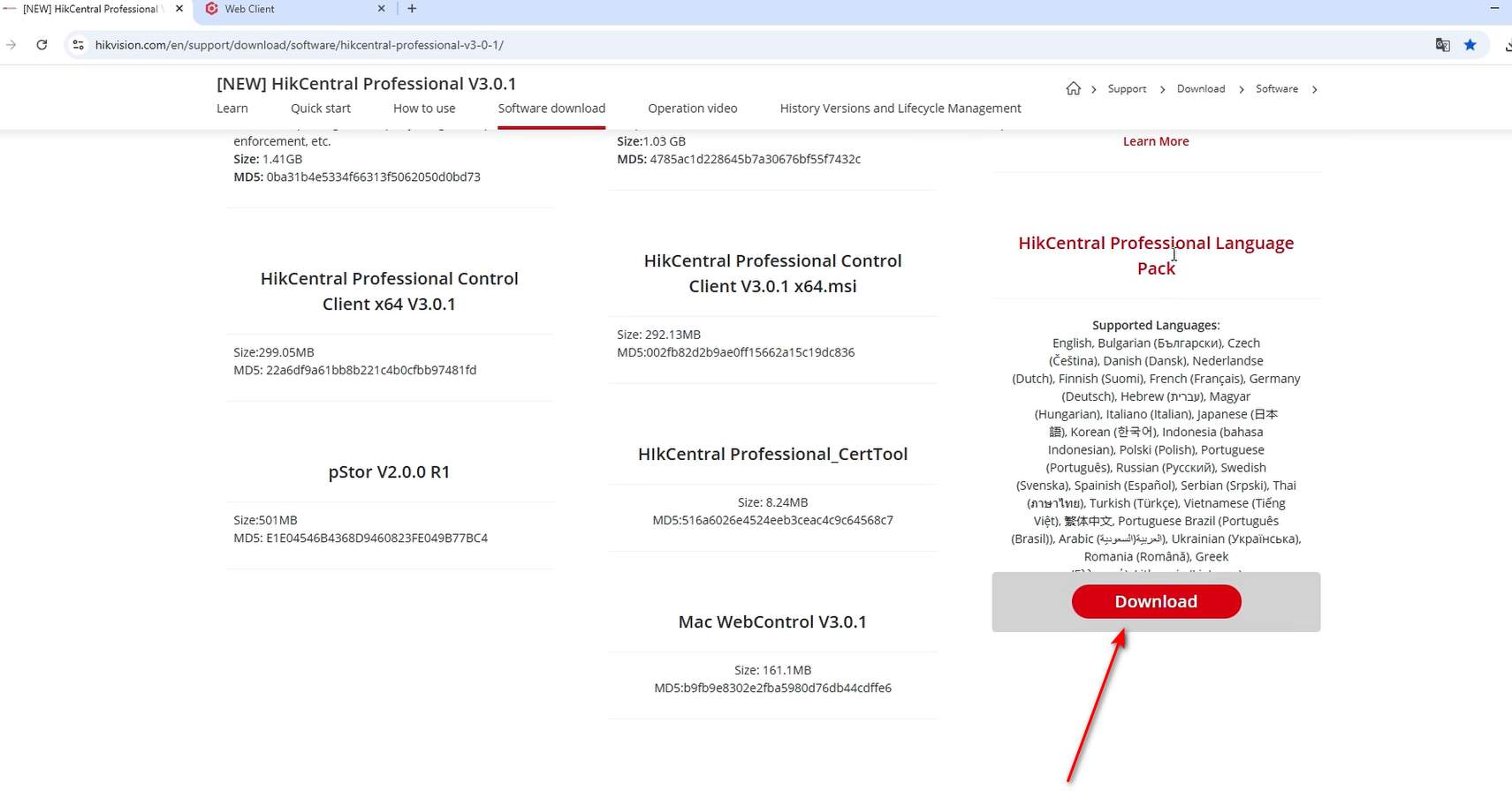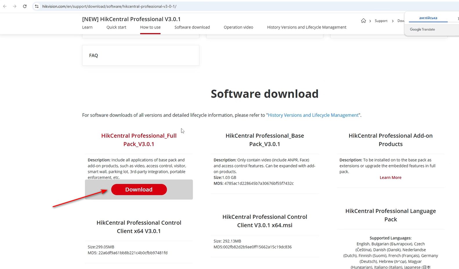 Завантажуємо HikCentral Professional Language Pack. знадобиться для додавання української мови.