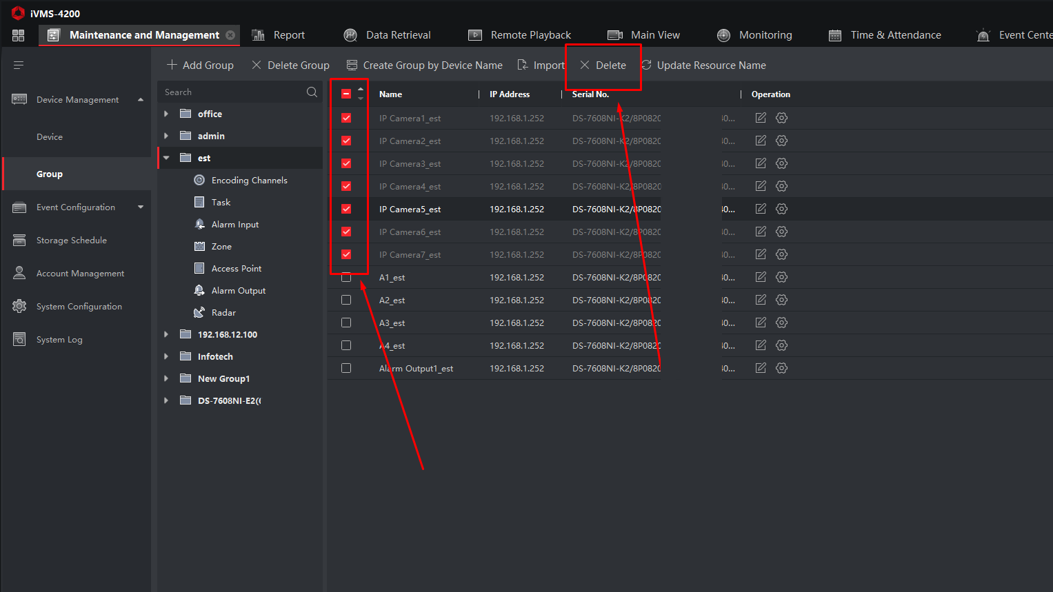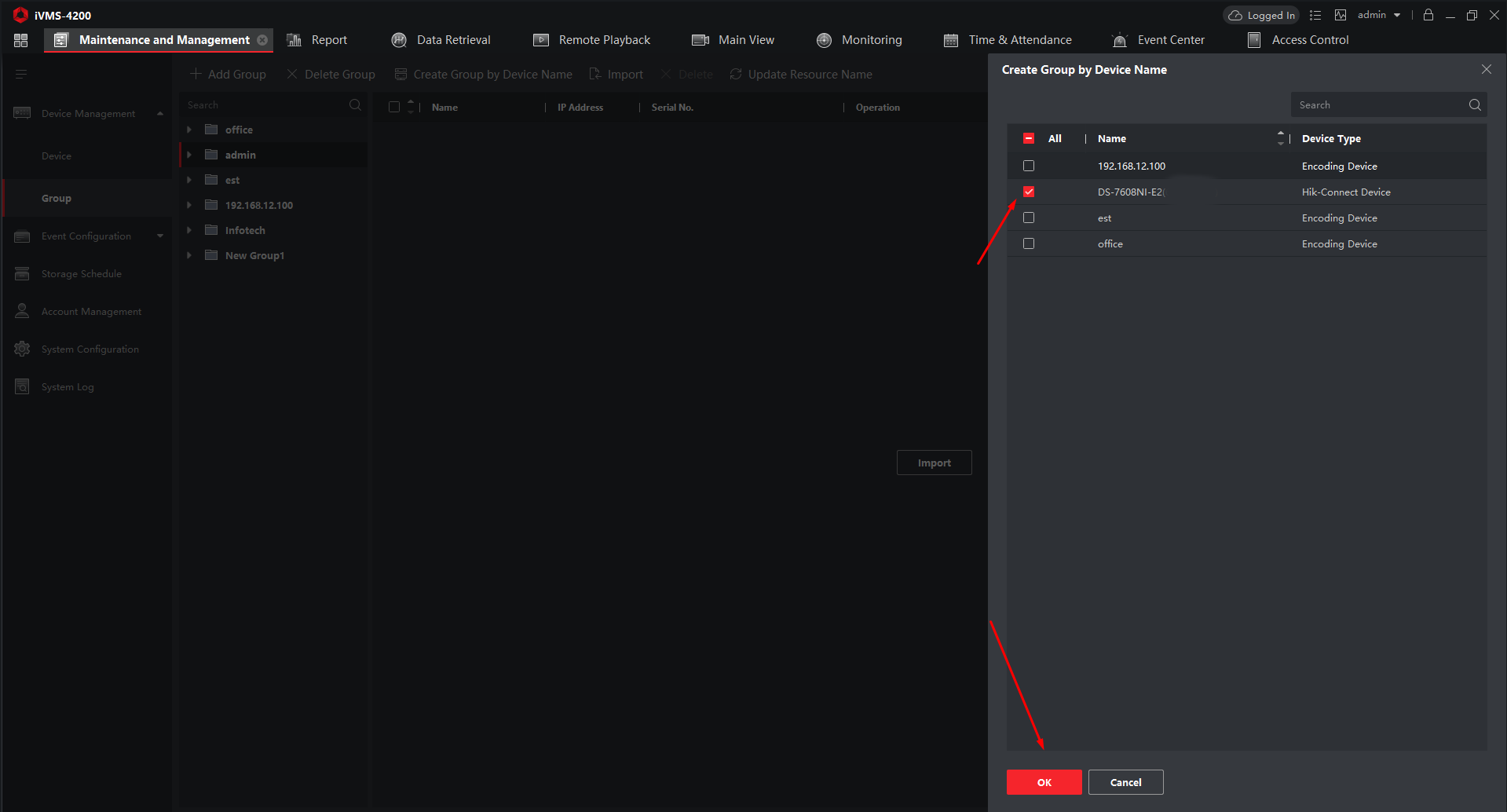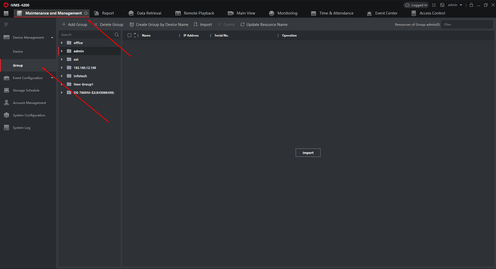 Maintenance and Management → Device Management → Group