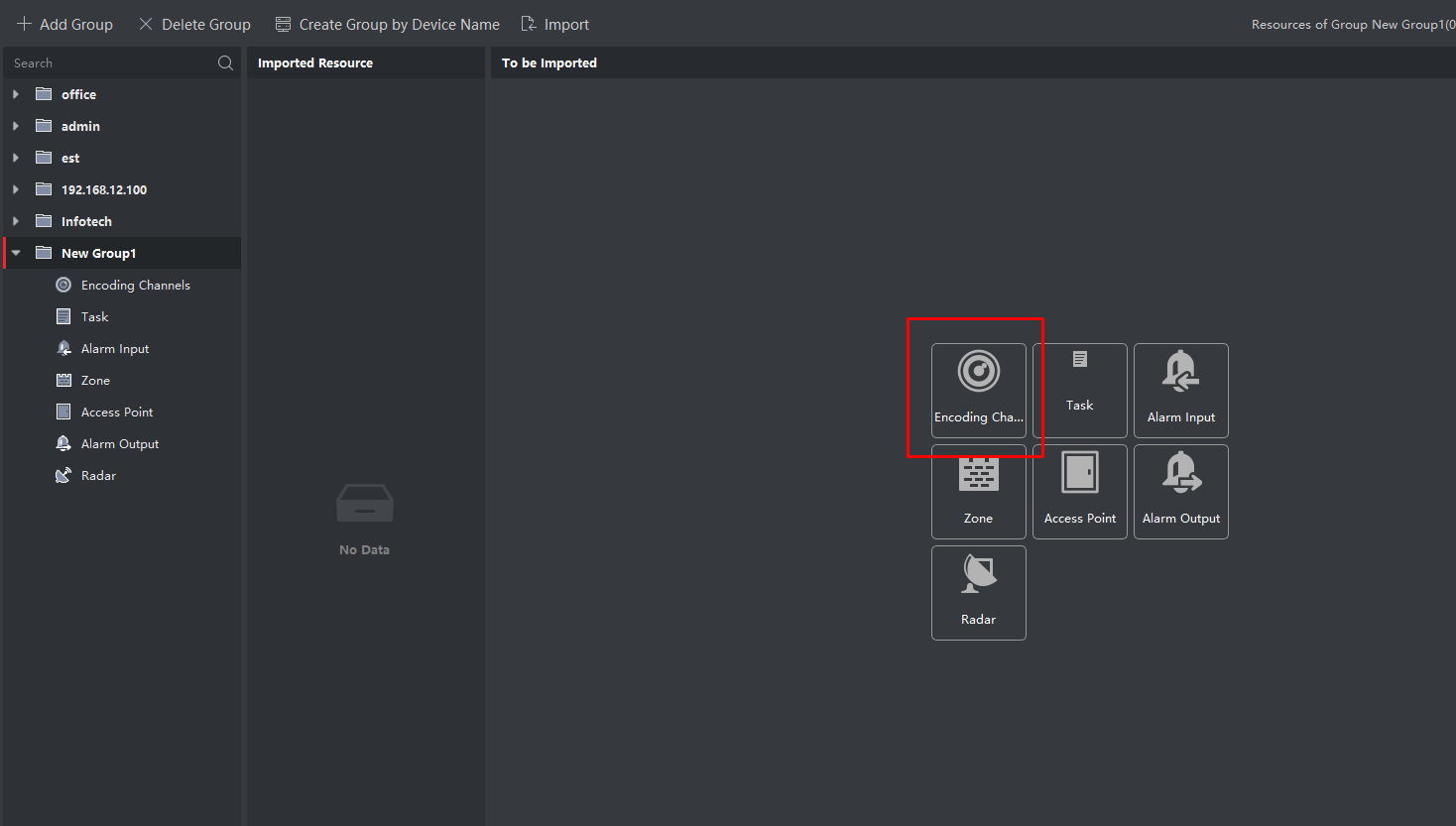 3) Імпорт камер у групу через Encoding Channels