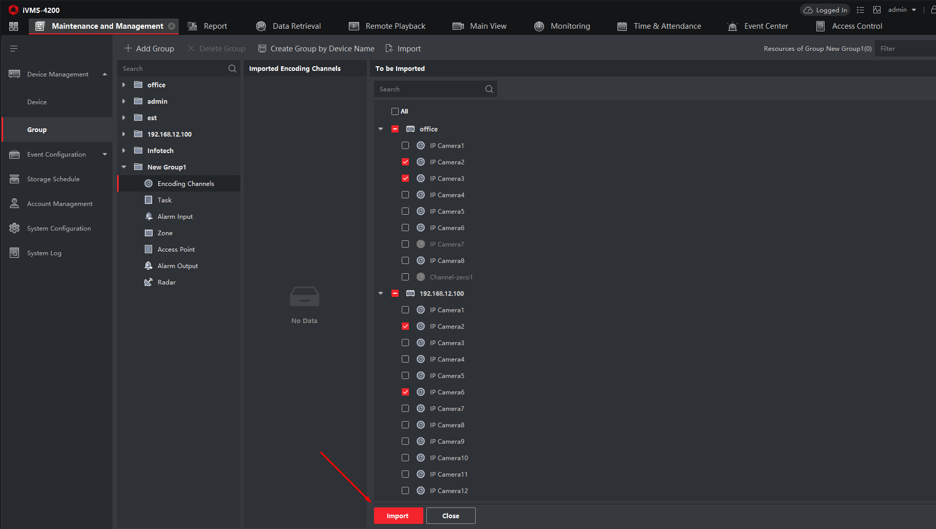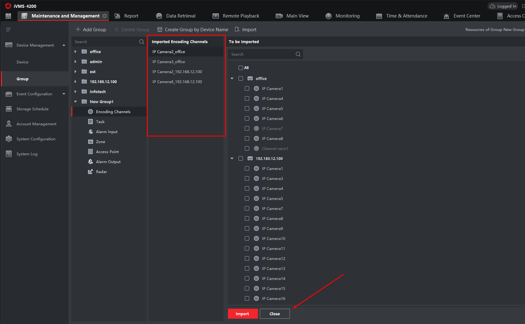 Переконайтеся, що вибрані камери з’явилися у списку Imported Encoding Channels.
