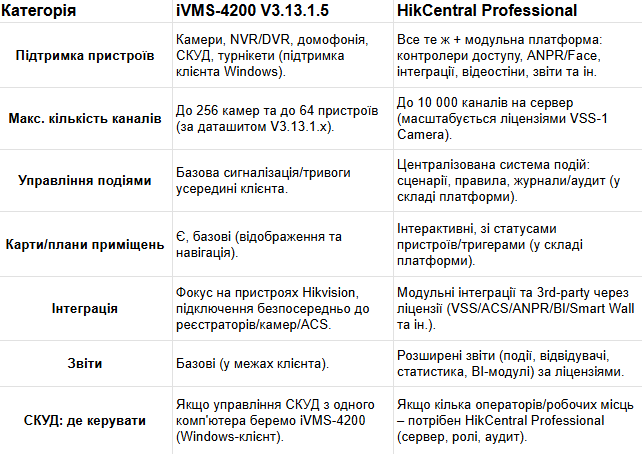 iVMS-4200 vs HikCentral Professional: коли вистачає безкоштовного ПЗ, а коли потрібна серверна платформа